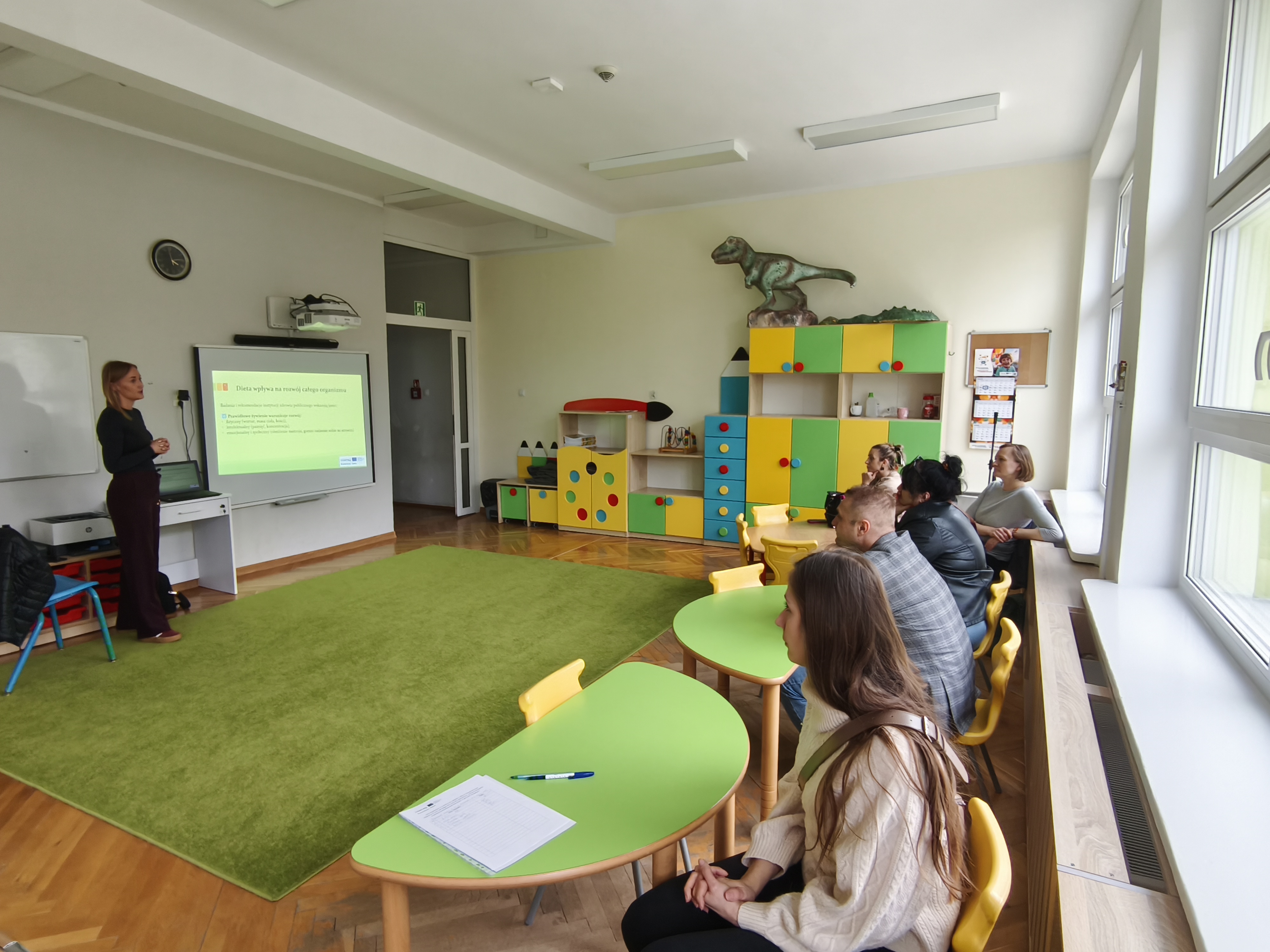 Spotkanie miało na celu poszerzenie wiedzy rodziców na temat zdrowych nawyków żywieniowych, roli zbilansowanej diety oraz kształtowania właściwych postaw żywieniowych już od najmłodszych lat.